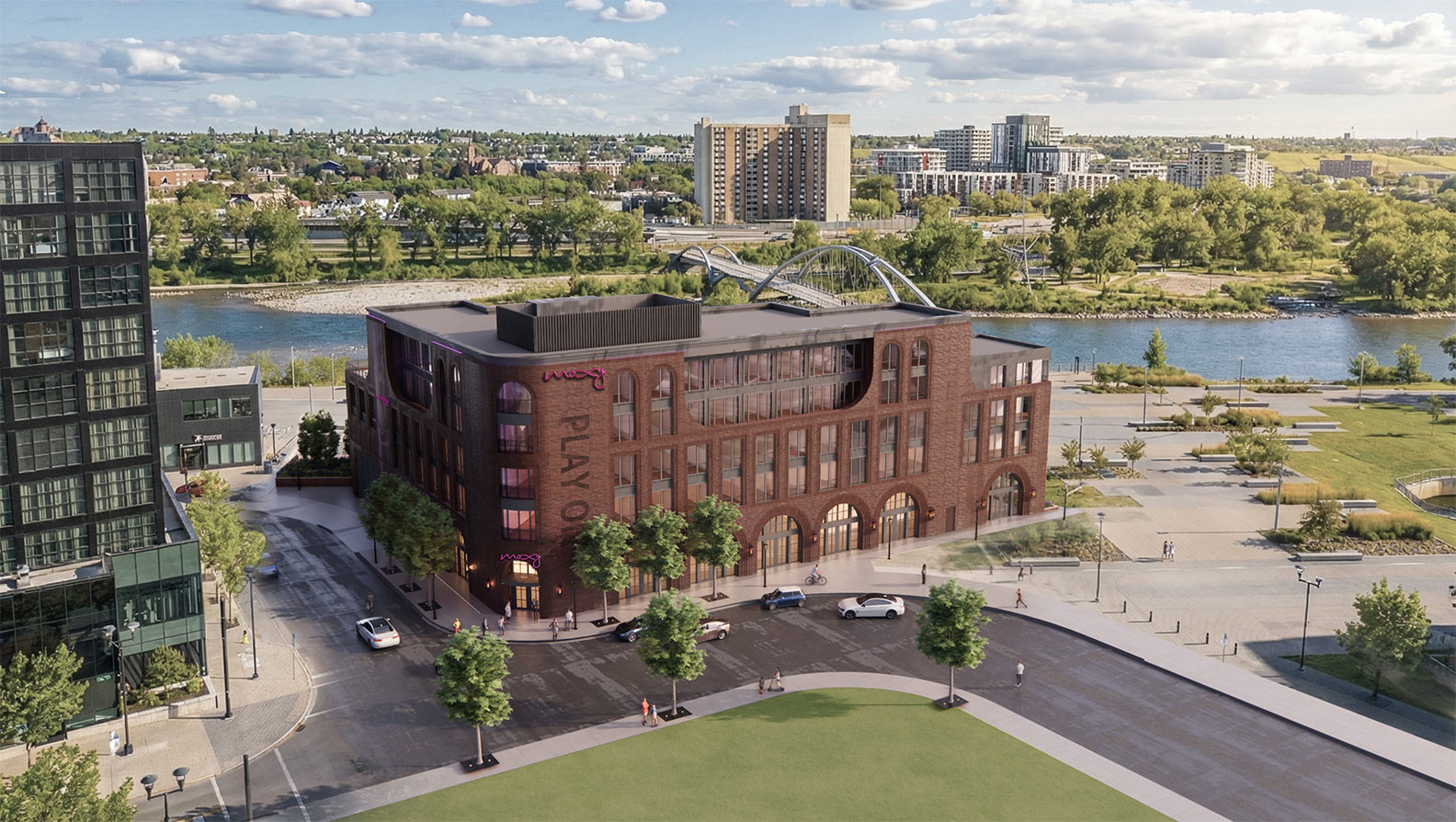 Positioned within one of Calgary’s fastest-growing inner-city districts, the project benefits from immediate proximity to the Bow River pathway system, East Village retail and cultural amenities, and convenient access to downtown. The development is intended to strengthen the area’s hospitality offering while contributing to the continued maturation of East Village as a mixed-use destination for residents, visitors, and business travellers.